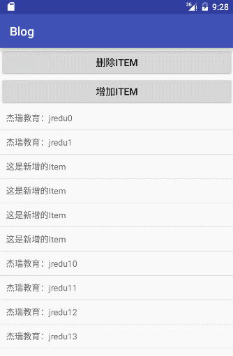 通過以上方式可以完成在某個位置刪除和新增一個Item,並配有默認的動畫效果。