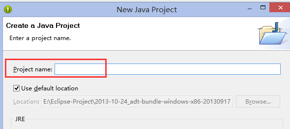 打開Eclipse,操作步驟: 點擊“File—>New—>java Project”,然後打開如下圖的界面: