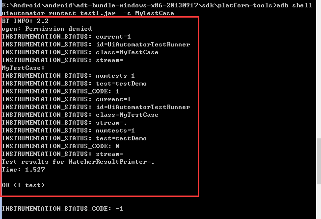 INSTRUMENTAION_STATUS_CODE:測試狀態碼,1表示正在執行,0表示執行成功,-1編輯運行錯誤
