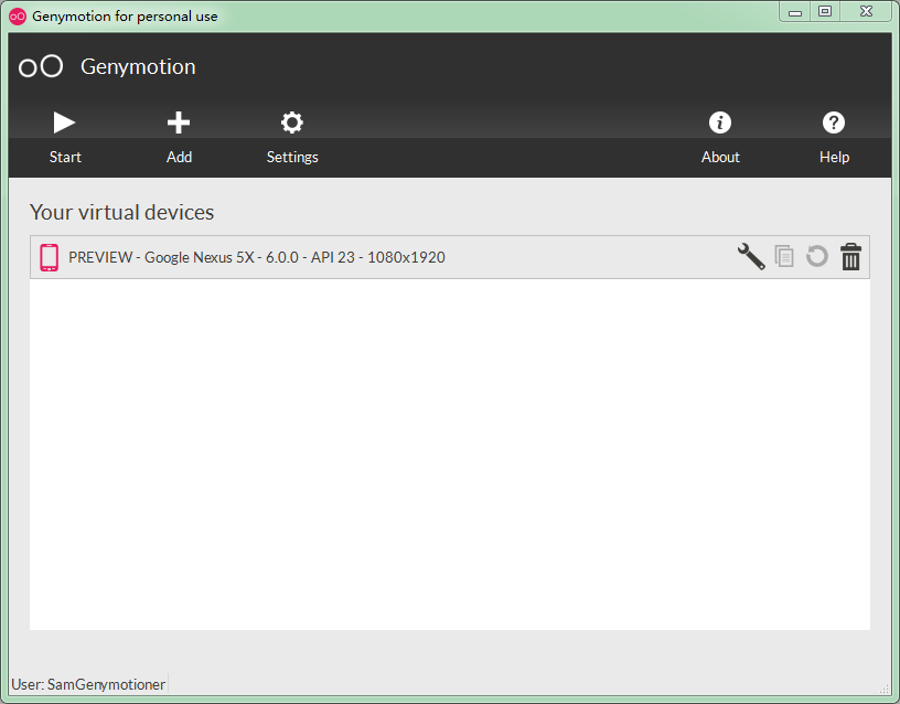 然後大概是一個這樣的頁面,初次進去會讓你添加一個虛擬機,也可以點Add按鈕加一個: