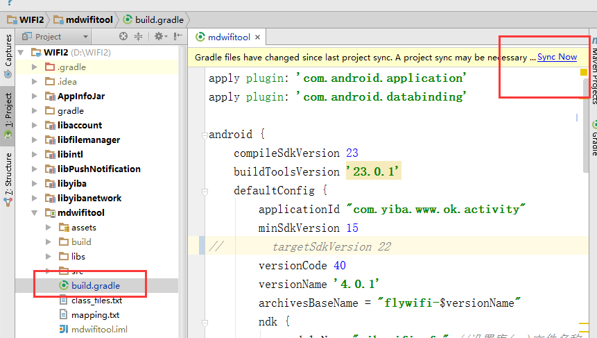 然後你就會發現,在build.gradle 文件的左上角出現 Sync Now 的字樣。