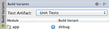 首先,確認在Build Variants窗口內的Test Artifact中選擇了"Unit Tests"。