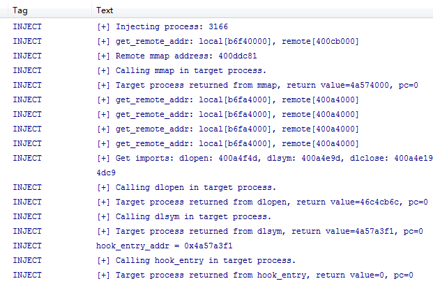 這時候觀察eclipse的logcat的INJECT標簽就會發現