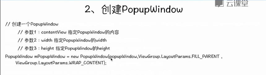 PopupWindow pop=new PopupWindow(view, LayoutParams.MATCH_PARENT,LayoutParams.WRAP_CONTENT);