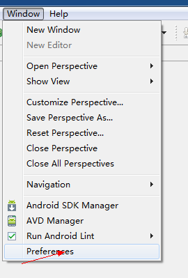 下圖點擊window->preferences如下圖