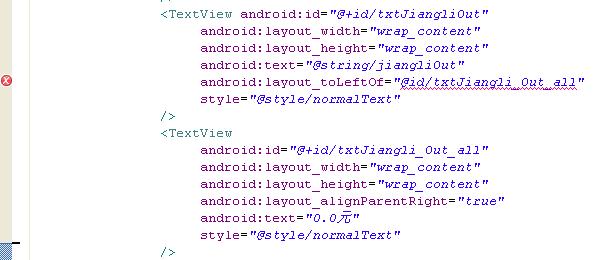 error: Error: No resource found that matches the given name (at 'layout_toLeftOf' with value '@id/txtJiangli_Out_all').