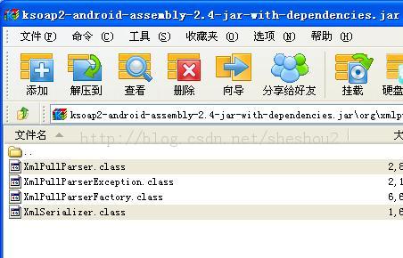 解決辦法是首先用快壓打開ksoap2-android-assembly-2.4-jar-with-dependencies.jar包,然後把對應的org.xmlpull.v1.XmlPullParser和org.xmlpull.v1.XmlSerializer去掉,就OK了。這兩個包與自帶的包沖突了