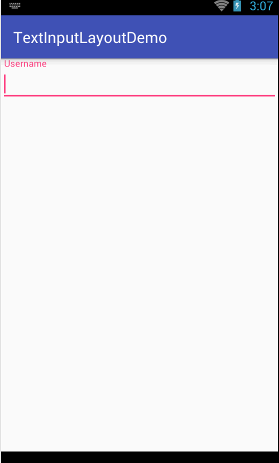 TextInputLayout主要作為EditText的父容器來使用,不能單獨使用。TextInputLayout解決了EditText輸入後hint文字消失的情況,當用戶在EditText開始輸入後,hint部分的文字會浮動到EditText的上方,而且還可以添加輸入錯誤時的提示信息,顯示在editText的下方,效果如下: