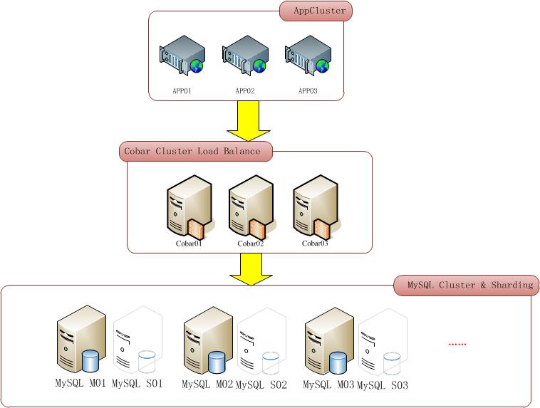 1.Cobar同時支持Cluster集群功能和Sharding數據切片功能,一般根據實際需要會采用混搭的方式;