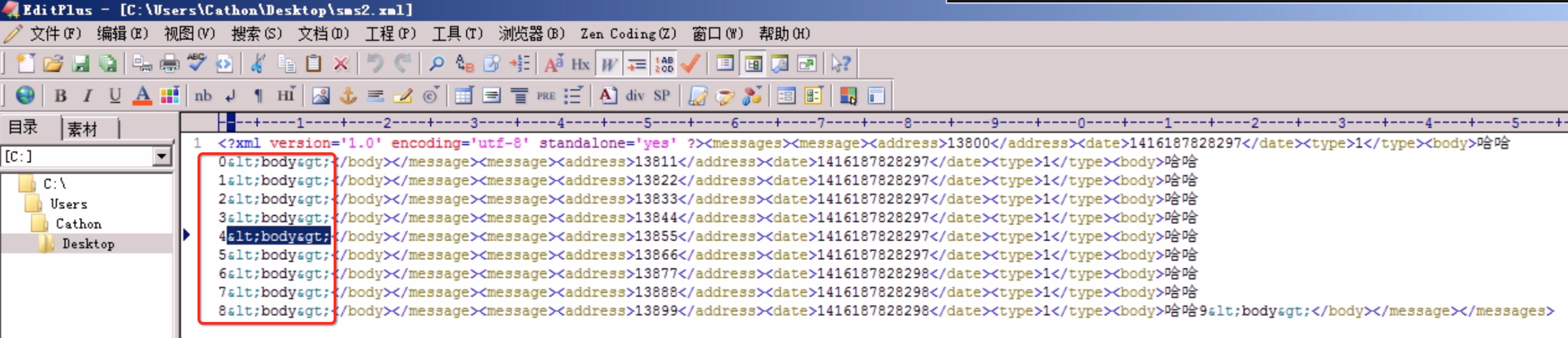 Sms sms = new Sms("138"+i+i, System.currentTimeMillis() + "", "1", "哈哈"+i);
