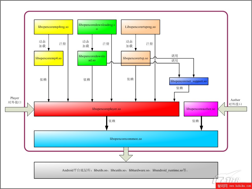 libopencorecommon.so是所有的庫的依賴庫,提供了公共的功能;