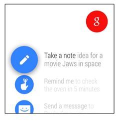 至於“需求”使用模式,用戶通過語音向可穿戴設備發出信號,它就會回復信息。設備含有麥克風,通過說“OK, Google”或點擊主屏幕就可以讓用戶調用一系列標准執行動作。用戶界面會提示用戶說出想要執行的動作指令。標准執行動作包括“做筆記”、“打電話”和“發信息”。你可以在運用程序上注冊標准執行指令,也可以自定義提示文本。