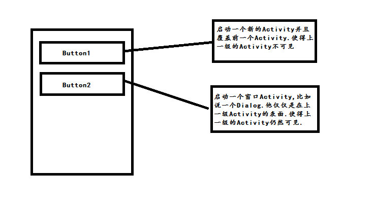 當我們點擊第一個按鈕的時候,開啟一個新的Activity(我們稱為Activity1).當Activity1被創建的時候方法的調用過程是這樣的.