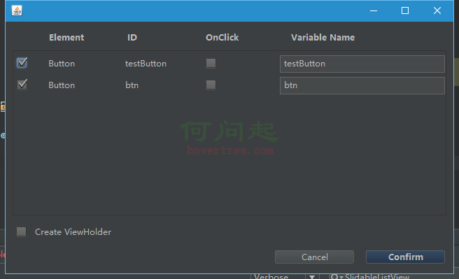 然後會出現這個,可以改改名字,或者設置onclick,點擊確定就可以了