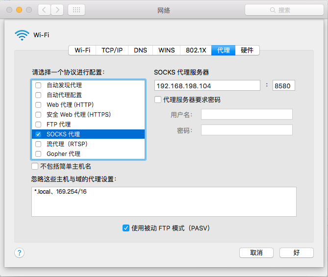 第三步:Mac上設置代理(打開網絡偏好設置->高級->代理)