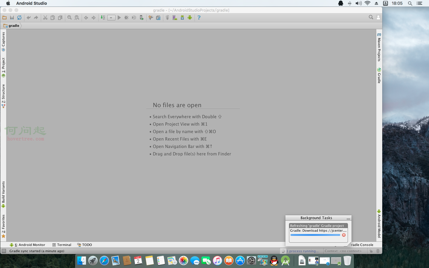 第七步:打開Android Studio,新建一個Project,進去的時候會自動下載gradle插件,同樣這個也是需要代理才能訪問。所以全程需要代理,等gradle build完成之後,代理就可以功成身退了。到 第三步 那裡勾掉 SOCKS代理 。