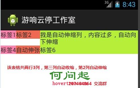 android:shrinkColumns="2" 自己主動收縮的列。多個列用逗號隔開,自己主動收縮的意思是假設該列的內容超出了表格列的寬度,自己主動向下顯示