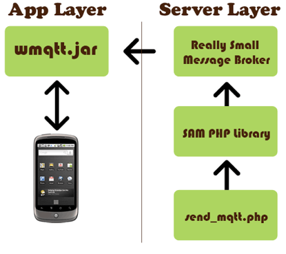 wmqtt.jar 是IBM提供的MQTT協議的實現。我們可以從這裡(https://github.com/tokudu/AndroidPushNotificationsDemo)下載該項目的實例代碼,並且可以找到一個采用PHP書寫的服務器端實現(https://github.com/tokudu/PhpMQTTClient)。