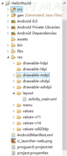 libs : 第三方庫,例如:v4包 因為4.0以上添加了很多新的api在2.0上沒有所以要用這個jar包