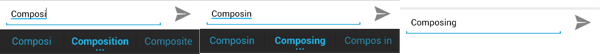 如果你的輸入法需要做預測或者要通過幾步組織成象形文字,你可以先在輸入框中顯示當前的輸入過程,最後再把組織成的最終字串提交給輸入框,用這個最終字串替換掉之前的過程串。你可以把中間過程串傳遞給setComposingText()函數來展現這個過程。