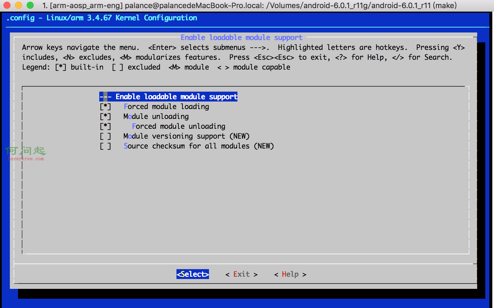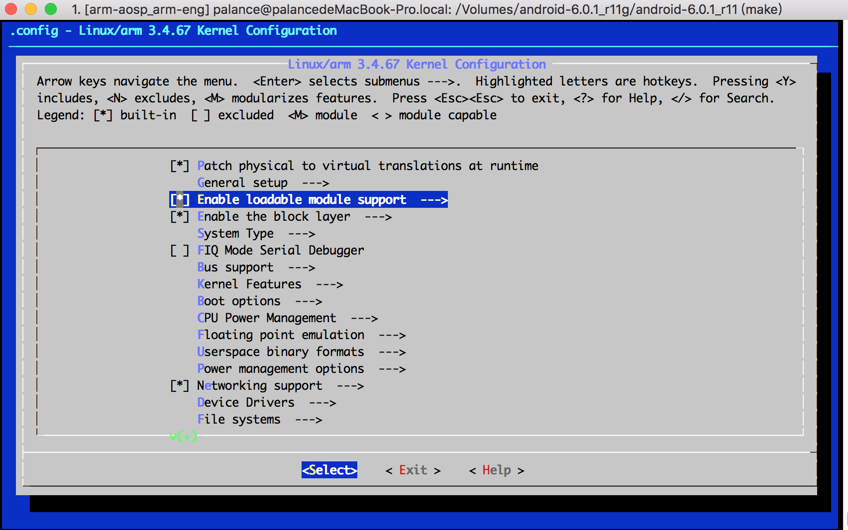 我以為是自己的內核版本有問題,倒騰了半天才明白:應該在一級界面中先對Enable loadable module support按下Y,使之選中: