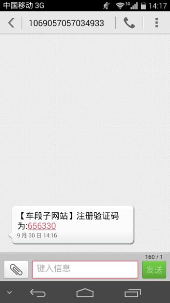 最後,我們來運行一下,看看我們的效果,由於小編的genymotion不知道為什麼不能運行了,所以委屈小伙伴們一下,看不了動態圖片了,不過並不影響,我們首先用一個號碼好注冊一下,如下圖所示: