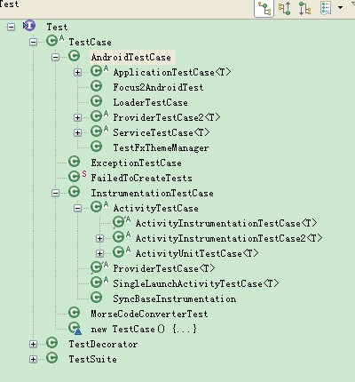 從上圖的類關系圖中可以知道,通過android測試類可以實現對android中相關重要的組件進行測試(如Activity,Service,ContentProvider,甚至是application)。