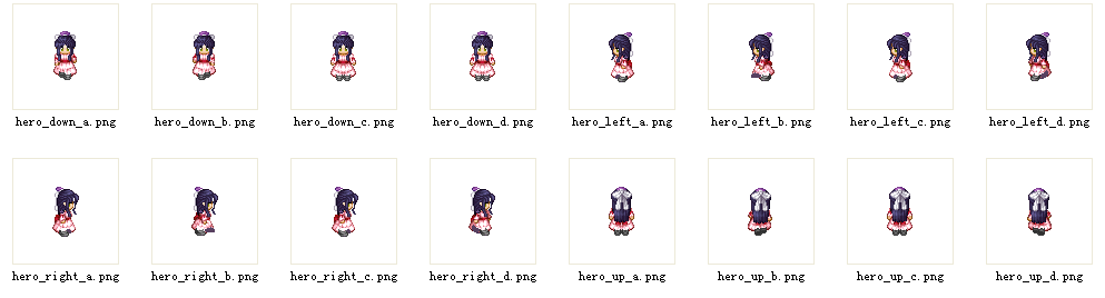mHeroAnim[ANIM_DOWN] = new Animation(context,new int []{R.drawable.hero_down_a,R.drawable.hero_down_b,R.drawable.hero_down_c,R.drawable.hero_down_d},true);