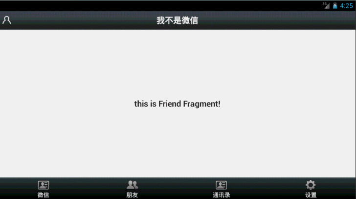 代碼中間還有兩個Fragment的子類,ContentFragment上面已經見過,FriendFragment其實類似: