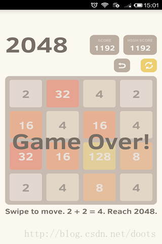 不,在這裡已經為你提供好了一個完整的游戲應用了,在文章的下面有源碼的地址哦。你只要稍做修改就可以變成一個完全屬於自己的應用了,比如將4*4換成5*5,甚至是其它的。如果你實在是慵懶至極的話,你只要將本應用的包名及廣告換成自己的,就可以上傳到市場上輕輕松松賺取自己的第一桶金了。