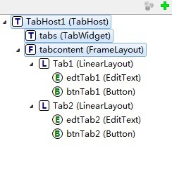 TabHost控件->TabWidget(必須命名為tabs)->FrameLayout(必須命名為tabcontent)。