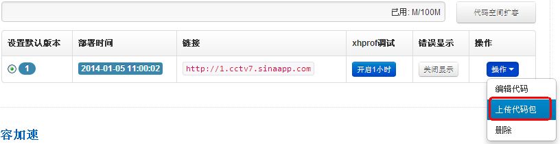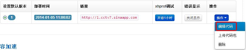 到這裡,就成功創建了一個域名URL為 http://cctv7.sinaapp.com/ 的應用了。
