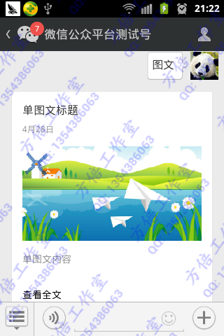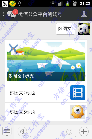 在你的公眾賬號輸入相應的命令,實現效果類似如下所示: