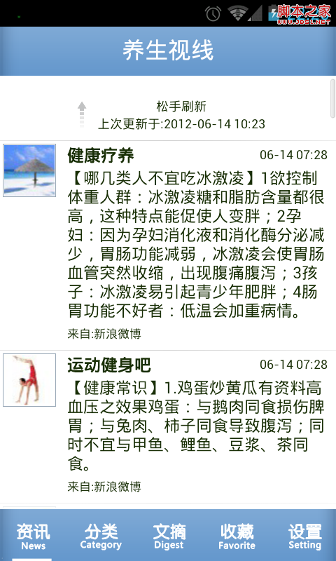 然後在Android中也逐漸被應用,比如微博,資訊類。