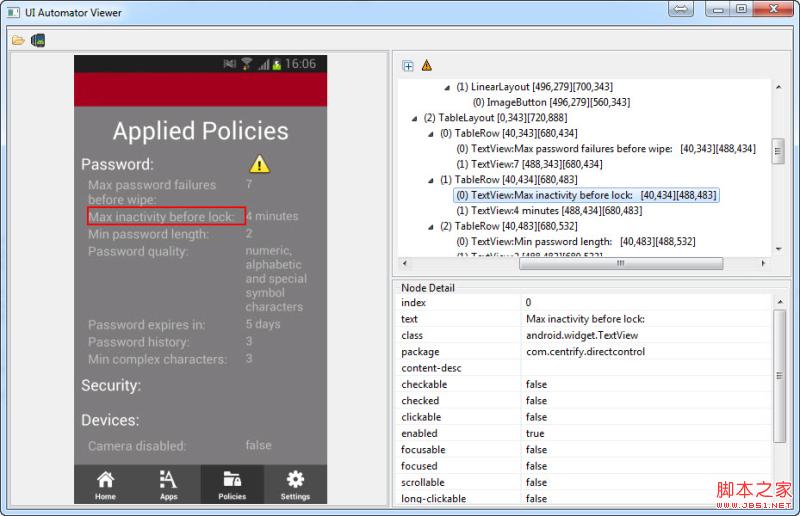 3.當TextView(1)的text內容為“Max inactivity before lock”,則可以確定我們所要的那個TableRow了。(其實就是找對應的index)