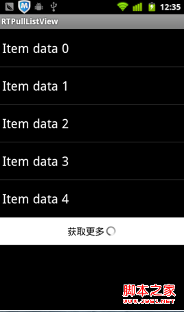 使用過程中可以對下拉顯示效果進行自定義,如果要修改頂部下拉顯示,則只需修改pulllist_head.xml即可,修改底部獲取更多則修改list_footview.xml即可。