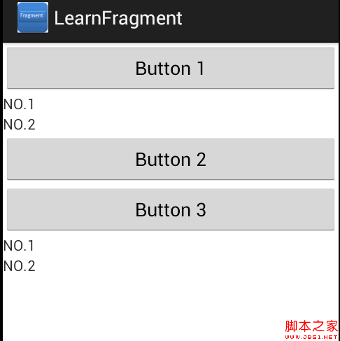 可以看到第二種方式加入fragment的時候,指定了父容器(一個線性布局)的id,其中已經有一個Button 3,所以fragment加在其後。