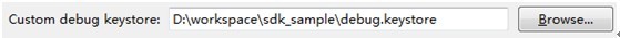 指定Custom debugkeystore選項的路徑為sdk demo工程目錄中的debug.keystore文件,如下圖: