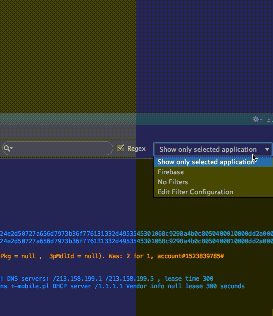 要做到這一點,您需要到Android Monitor面板在右側下拉列表中選擇Edit filter configuration。