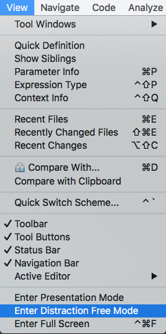 您可以依次點擊: View → Enter Distraction Free Mode來開啟無干擾模式。