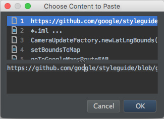 剪貼板堆棧的深度在“設置”對話框的“編輯器”頁面的“限制”部分中配置。超過指定的數量時,將從列表中刪除最早的條目。 [在IntelliJ IDEA中剪切,復制和粘貼]