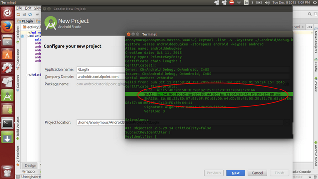 1.打開你的終端並執行以下命令來生成SHA-1指紋。如果要求輸入密碼,輸入android,然後按回車鍵。