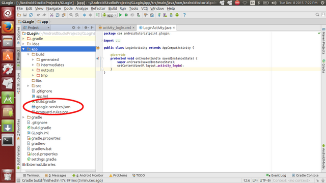 1、在Android Studio Project中創建一個新項目。將項目命名為GLogin並給它一個軟件包的名稱。選擇活動名稱為LoginActivity。