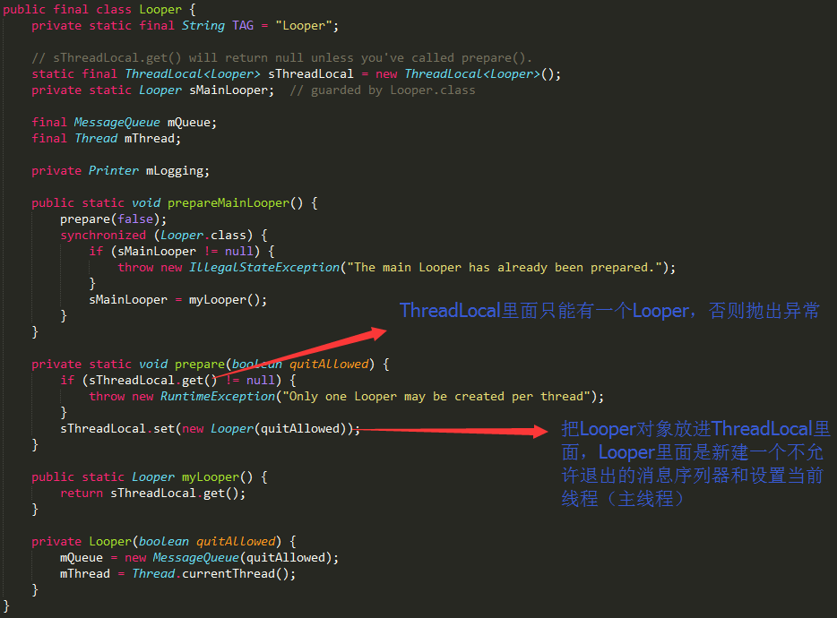 接下來,我們看到Looper類了,我們進去看看裡面的源碼實現: