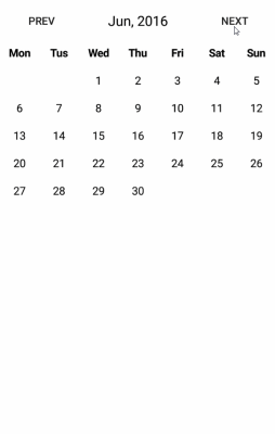 下面我通過我在github上開源的Android-CalendarView項目為例,來介紹一下自定義控件的方法。該項目中自定義的控件類名是CalendarView。這個自定義控件覆蓋了一些自定義控件時常需要重寫的一些方法。