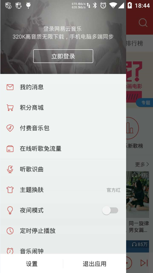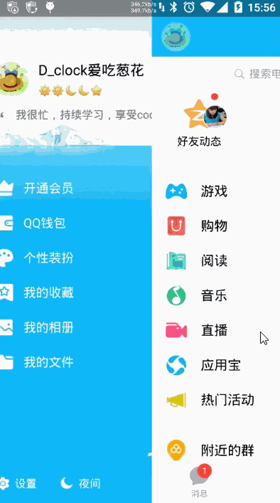 網易雲音樂側滑導航欄效果