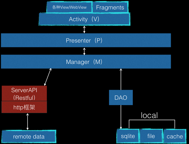 在Android平台和整個移動開發生態都發展的非常快,在Android興起之初,對層的重要性不是太強調,所有很多開始寫Android程序的開發對層劃分不是太清晰 ,看到很多入門書本裡很多直接在Activity裡面直接處理數據的代碼,例如直接在Activity裡面直接調SharedPrefrence操作數據,直接在Activity 裡面直接調用網絡請求等,很多初級選手的很容易寫出這樣沒有層次的代碼出來。當接口變更,當存儲方式更好的時候整個UI層面的邏輯都受影響。