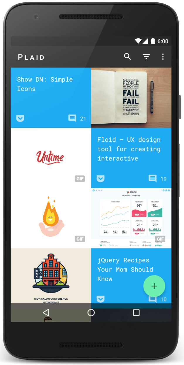 Plaid是一款遵循Material風格設計的Android App、 聚合了主流創意&設計相關資訊的新聞應用,想知道一款完整的Material Design的App應該怎麼做?就看看它吧。