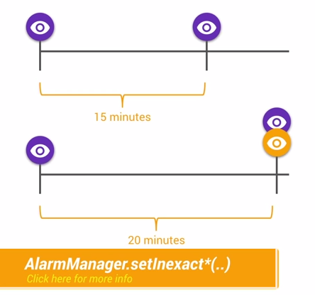 這正是JobScheduler API所做的事情。它會根據當前的情況與任務,組合出理想的喚醒時間,例如等到正在充電或者連接到WiFi的時候,或者集中任務一起執行。我們可以通過這個API實現很多免費的調度算法。