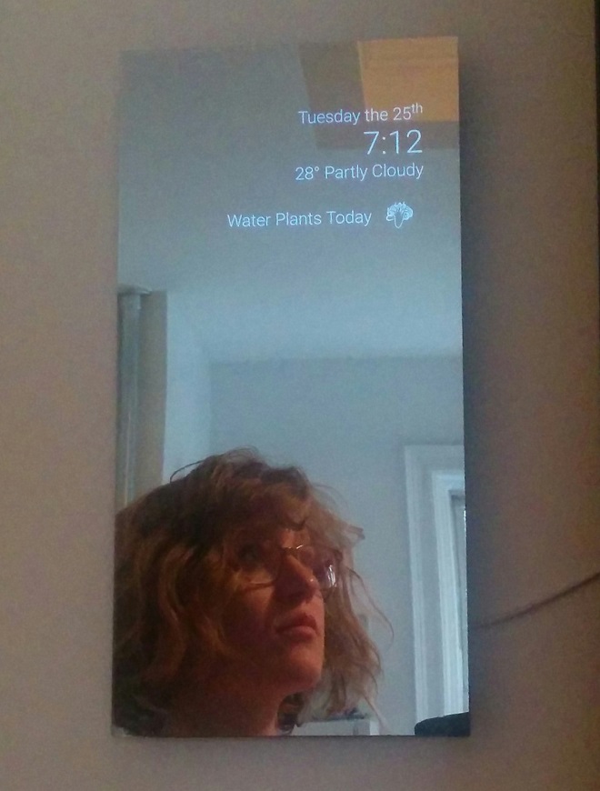 先來看看我家裡的一面搭載了Android應用的鏡子,上圖:
